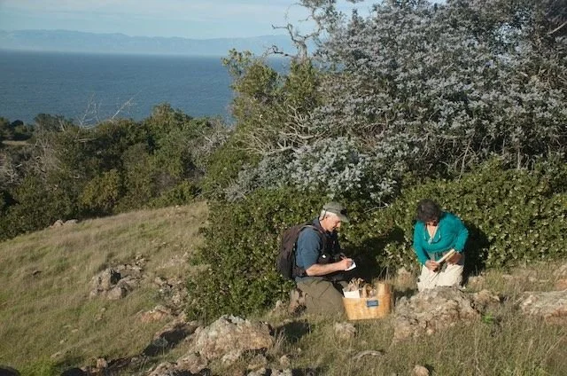 Why do we do this? My photographer husband, Doug (who expertly carries the mushroom basket), and I love to study fungi and we have learned a great deal during the almost three years of this project. We crave exploring this spectacular island. It is not unusual for our mushroom activities to be interrupted by sightings of tiny endemic Santa Cruz Island Foxes, giant SCI Scrub Jays, endemic Rufous-crowned Sparrows, native Bald Eagles, island Spotted Skunks and more. As we walk, we’ve examined a number of Channel Island endemic plants on Santa Cruz, like endemic Dudleya, Silver Lotus and Ironwood. It is also fun to think about the Island’s rich archeological and cultural histories, from the early human inhabitants some 13,000 years ago through the ranching days of the 19th and 20th centuries.