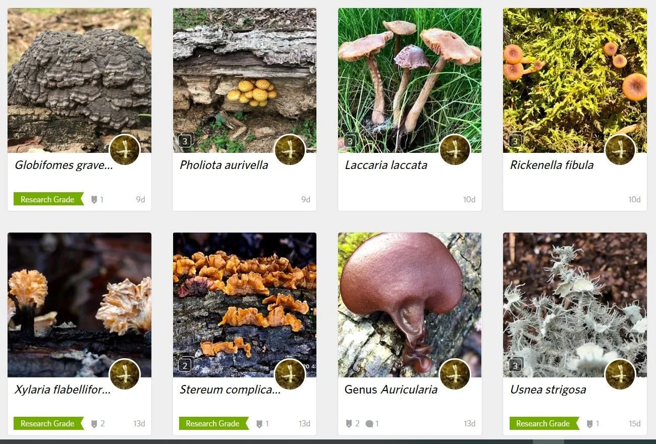You may have used iNat to record fungi for FUNDIS. iNat does even better for many plants and animals. Using iNat outdoors is a great way to help friends and family get their minds off the pandemic and tune into something that is bigger than humanity: the diversity of life that humans are one small part of. Putting names on organisms opens us to the realization that every distinct life form has a unique set of attributes and ecological requirements which the name allows us to probe.