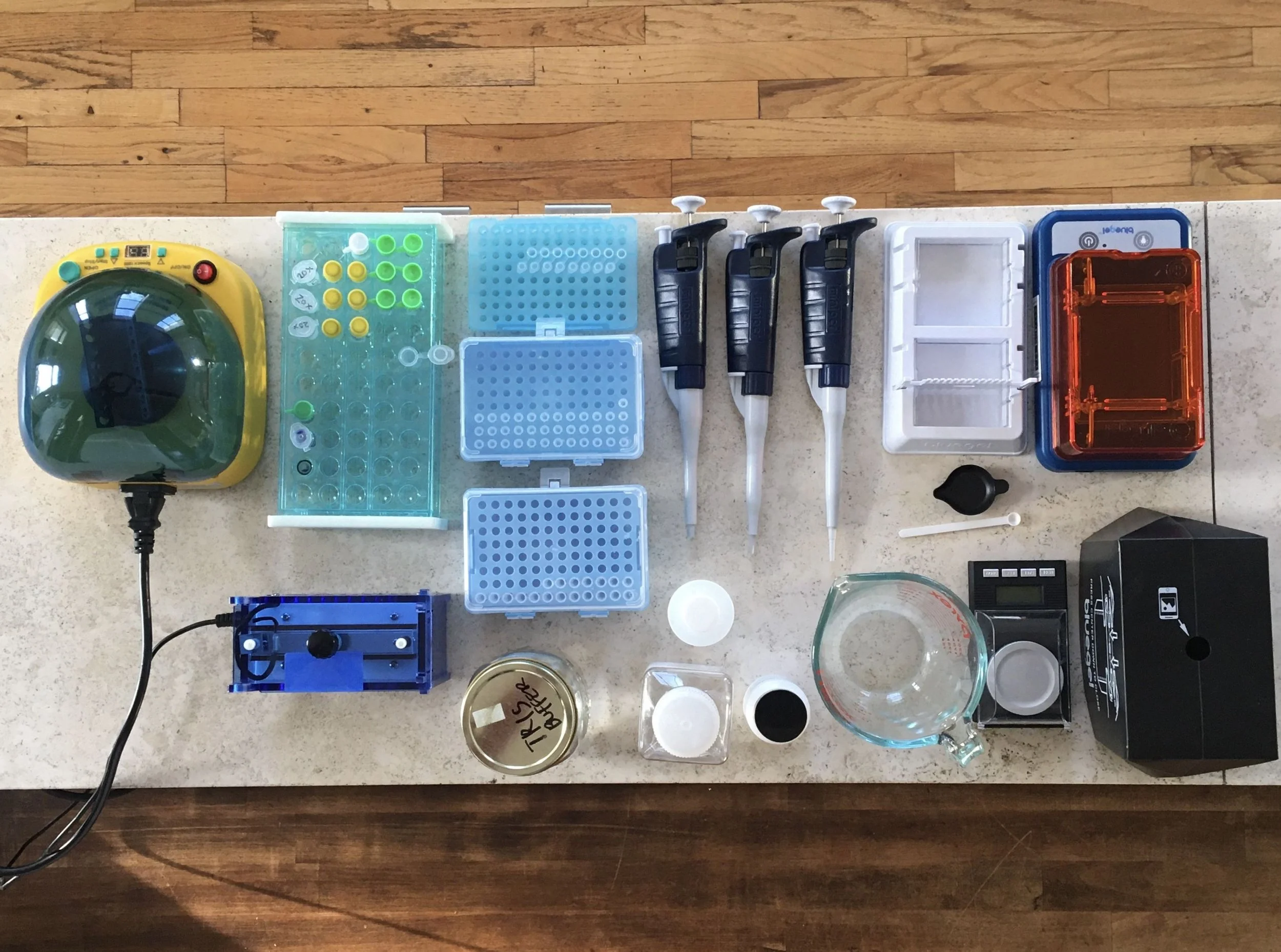I bought my lab from a company called MiniPCR, but there are others. Many institutional labs are selling off older equipment on eBay, and a functional lab can be put together for less than $1000. My lab takes up about two square feet of kitchen counter space and disappears into a couple of boxes when I’m done.